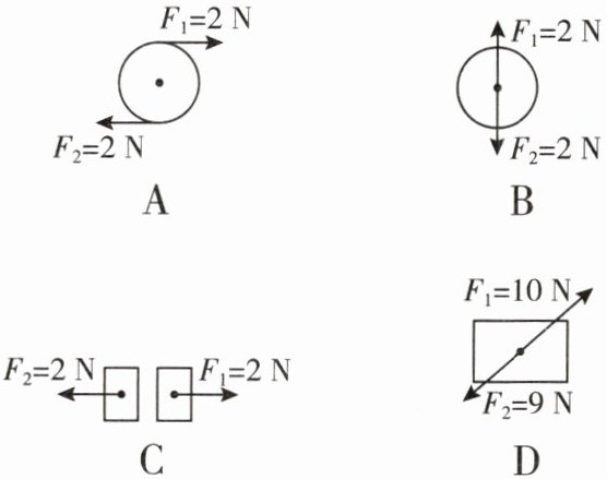 $C.F_1、$$F_2$大小相等时,小车一定处于平衡状态