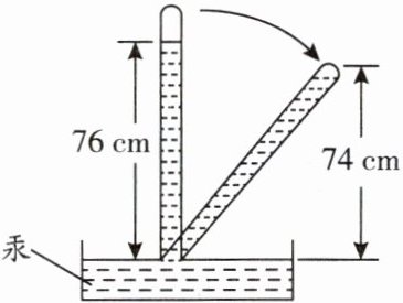 mm汞柱产生的压强。若玻璃管顶部混入少量空气则测量结果偏小