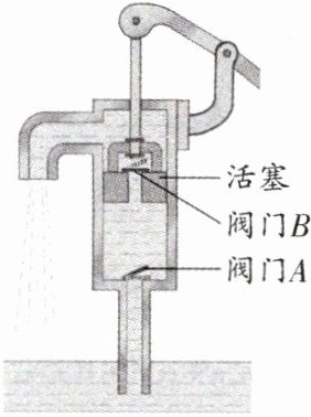 把水从低处抽到高处的。抽水时,活塞在力的作用下向上运动,阀门B关闭
