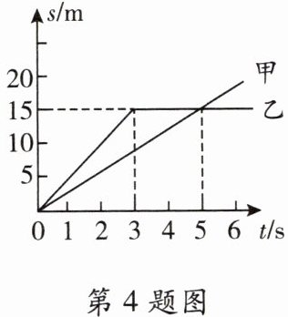 4. 甲、乙两物体,同时从同一地点出发沿直线向同一方向运动,它们的 $s - t$ 图像如图所示。下列说法正确的是(