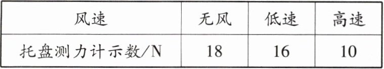 小红用纸板制作了一个上凸下平的模型代替伞面,将其固定在一个托盘测力计上;在模型的正前方用电风扇迎面吹风,模拟气流。打开电风扇,调整气流速度,读出测力计的示数。数据记录如下表所示。
