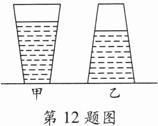 12. 一个未装满饮料的密闭杯子,先正立放在桌面上(如图甲),然后反过来倒立放在桌面上(如图乙),则两次放置饮料对杯底的压力 $ F_{甲} $