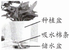 11. 如图所示,水平桌面上放着一盆用自动吸水花盆栽种的绿植,未盛水时总质量为 $ 0.4 \, kg $。盛入深度为 $ 0.05 \, m $ 的水后,花盆对桌面的压强为 $ 1000 \, Pa $。已知花盆底面积为 $ 0.01 \, m^2 $,忽略花盆厚度,$ \rho_{水} = 1.0 × 10^{3} \, kg/m^3 $,$ g $ 取 $ 10 \, N/kg $,求: