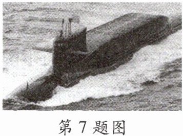 7. 如图所示是我国的“$ 094A $”战略核潜艇,当它下潜至水下 $ 300 \, m $ 处时,受到海水的压强为 ______ $ Pa $。($ \rho_{水} = 1.0 × 10^{3} \, kg/m^3 $,$ g $ 取 $ 10 \, N/kg $)