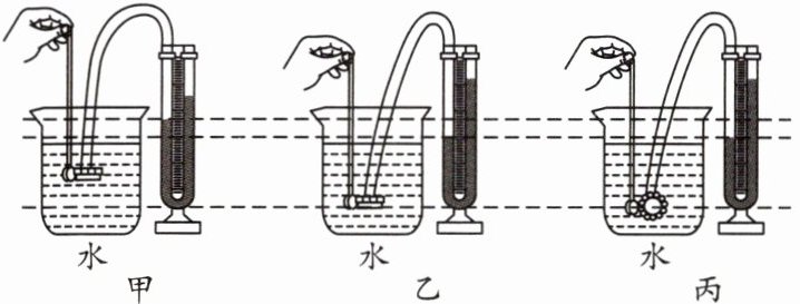 与图乙相同,观察比较 $ U $ 形管两侧液面高度差。(5) 为使 $ U $ 形管两侧液面高度差更明显,可将 $ U $ 形管中的液体换成密度
