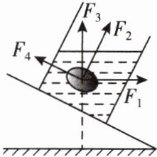 2. 一个盛有盐水的容器中悬浮着一个鸡蛋,容器放在斜面上,如图所示。图上画出了几个力的方向,你认为鸡蛋所受浮力的方向应是(