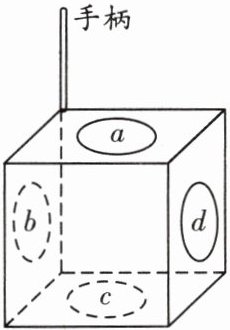 2. 如图所示,在探究浮力产生原因的实验中,在透明密闭正方体塑料盒的上下左右四个面的中心处,挖出四个大小相同的圆孔。在孔的表面分别蒙上面积都为$S的橡皮膜a$、$c$、$b$、$d$。抓住手柄将塑料盒竖直浸没到水中后静止。