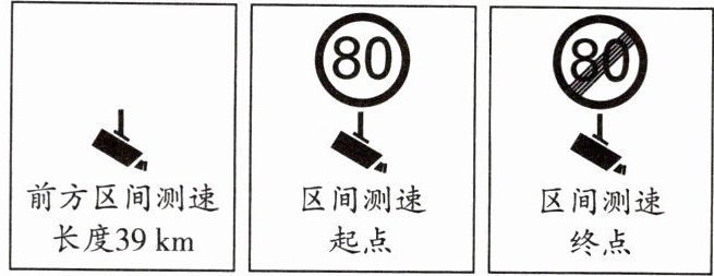 12. 为了有效遏制超速行为,保障高速公路上的行车安全,交通管理部门加大了道路限速监控管理力度,其中一种方式是采用“区间测速”。“区间测速”就是测算出汽车在某一区间内行驶的平均速度,如果超过了该区间的最高限速,即被判为超速。如图所示是某高速公路上的一个区间测速的相关标识,某汽车以 $70km/h$ 的速度进入该区间测速路段(全长为 $39km$),匀速行驶了一段距离后又以 $100km/h$ 的速度匀速行驶了 $15min$,然后再以 $70km/h$ 的速度继续匀速行驶直至离开该区间测速路段。