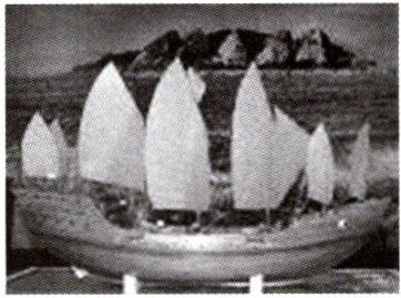 6. 如图所示是古代与北京天坛齐名的“福船”(模型),它的出现为中国乃至世界航海史写下了璀璨的一页。已知该船满载时排开水的质量可达$1200t$。(海水密度取$1.0×10^{3}kg/m^{3}$,$g取10N/kg$)试回答: