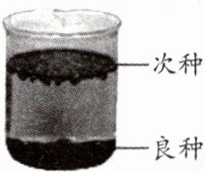 8. 盐水选种是一种常用的选种方法。方法是:将待选的种子放入浓度适当的盐水中,良种沉入水底,次种则漂浮于水面,如图所示。其中,盐水浓度的把握是关键。如果盐水的浓度太高,则可能(