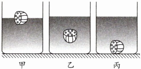 C.三杯盐水密度的大小关系是 $ \rho_{甲} = \rho_{乙} > \rho_{丙} $