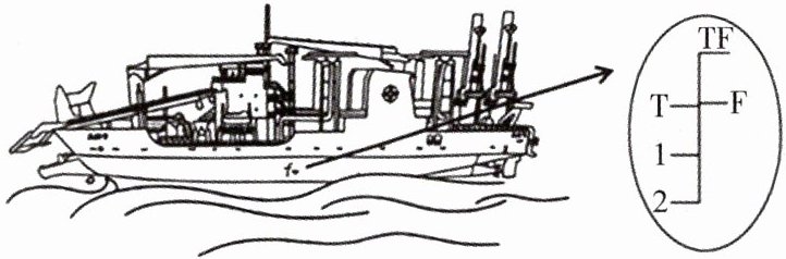 2. 我国自主建造的“天鲸号”挖泥船在港口建设、人工造岛等领域作出了杰出贡献。为了航行安全,“天鲸号”的船体上标有国际航行海船载重线,示意图如图所示,船体标志的几条水平横线分别表示该船在不同水域及不同季节所允许的满载时的吃水深度,例如 $ TF $ 表示轮船在热带淡水中航行时的载重线。夏季和冬季轮船在海水中航行时的载重线在图中用数字表示,已知冬季海水的密度大于夏季海水的密度。请分析并判断数字 $ 1 $ 和数字 $ 2 $ 对应的载重线哪一条是冬季的载重线,并说明原因。