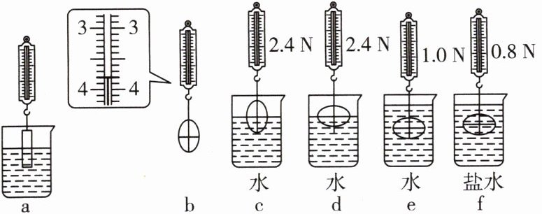 (1)a 中将铁块缓慢浸入水中,随着深度增加,弹簧测力计示数逐渐变小,铁块受到的浮力逐渐