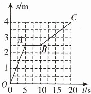 4. (2025·大兴安岭)某物体运动的 $s - t$ 图像如图所示,$OA$ 段的平均速度______ (选填“小于”“等于”或“大于”) $BC$ 段的平均速度;$0\sim 20s$ 内的平均速度是______ $m/s$。