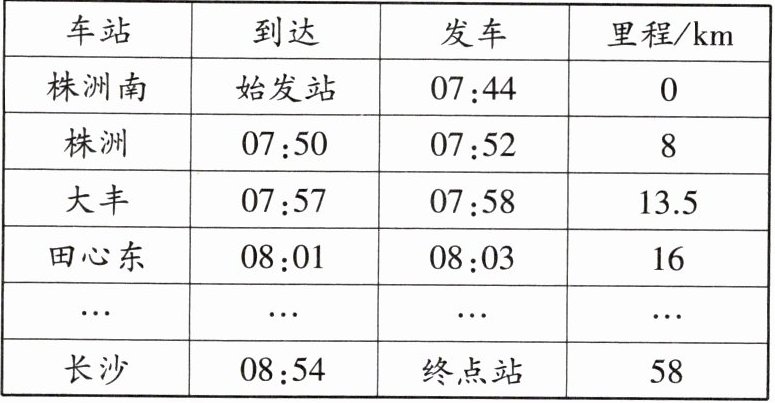 $km/h$。(2) 列车在“株洲南—株洲”段的运行速度比在“株洲—田心东”段的