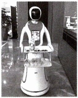 1. 如图是一款智能送餐机器人,它受到的重力为$300N$。如果机器人在水平路面上以$0.4m/s的速度沿直线匀速运动10m$,它所受到的阻力为$100N$,则机器人的重力做功