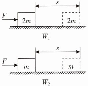 2. 用大小相同的力$F$,作用在质量不同的物体上,使它们分别在同一水平面上沿力的方向移动相同的距离$s$,如图所示,$F所做的功分别为W_{1}和W_{2}$,则(