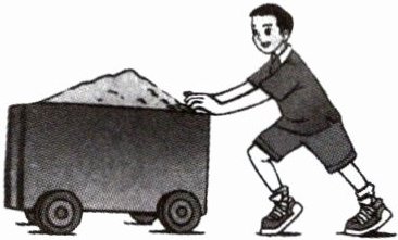 8. 在劳动实践活动中,小明在平直的道路上用推车运送小麦,如图所示。他用$60N的水平推力推着推车以1m/s$的速度匀速前进了一段距离,所用的时间为$5s$。求: