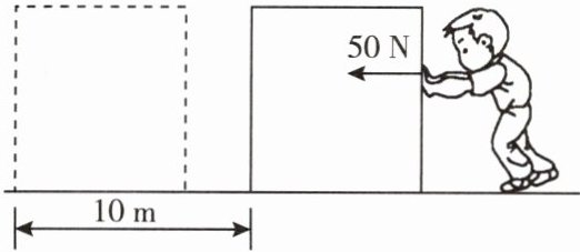 7. 在水平地面上,用 50 N 的水平推力推动重 100 N 的箱子,使箱子在 5 s 内前进了 10 m,如图所示,则: