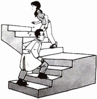 4. (双选)如图所示,小女孩的质量为$ m_1,$她爸爸的质量为$ m_2,m_1 < m_2,$每层楼高为 h,他们从一楼走到六楼,小女孩所用时间为$ t_1,$她爸爸所用时间为$ t_2,$且$ t_1 < t_2。$在此过程中,下列说法正确的是(