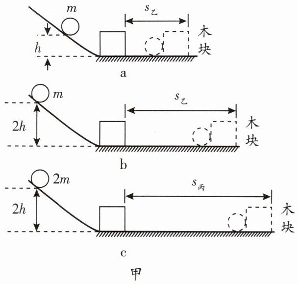 (3)分析图甲a、b的实验现象可知,钢球动能的大小与