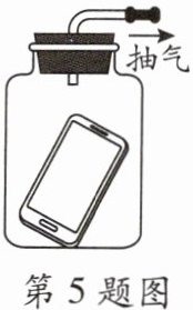 5. 如图,将一个正在播放音乐的手机放入瓶内,当瓶内有空气时,你能听到音乐声。用抽气机将瓶内的空气抽出,在抽气机向外抽气的过程中,你听到的音乐声将