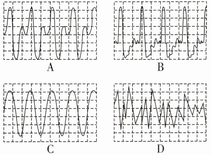9. 把音叉发出的信号输入计算机,观察到声音的波形图如图所示。换另一个音叉做实验,可能得到的波形图是(