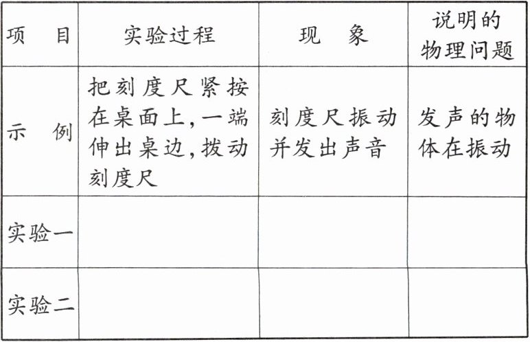 2. 给你一把刻度尺,利用它可以做哪些声学实验?请你仿照示例把下表补充完整。