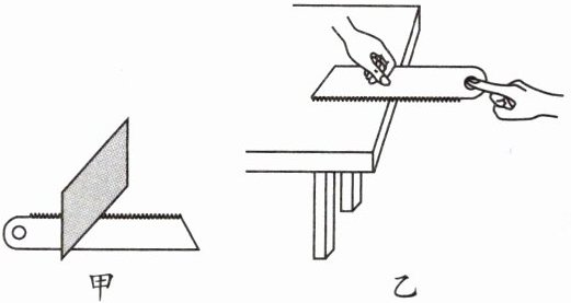 (2)如图乙所示,用手将锯条压在桌沿上,用另一只手轻拨锯条一端,注意听其响度;保持锯条伸出桌面的长度不变,再用力拨锯条,听其响度会变大,说明响度与声源的