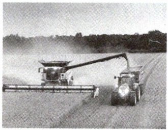 2. 如图所示,丰收时节,联合收割机边行驶边收割粮食,同时把收割的粮食装到卡车上。卡车司机应控制卡车怎样行驶?这样操作的目的是什么?