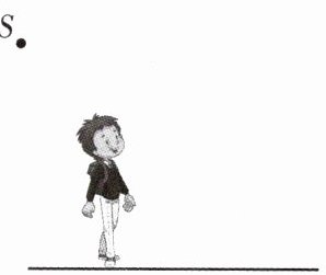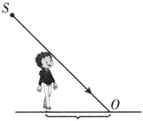 1. 在图中画出路灯 $ S $ 下小明的影长,并用大括号标出。