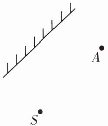 3. 如图所示,从光源 $ S $ 发出的一束光射向平面镜,经平面镜反射后过 $ A $ 点,请作出这束入射光的光线并完成光路图。
