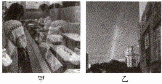 形成的;图乙是走出博物馆后,看到天空出现的彩虹,这是光的色散