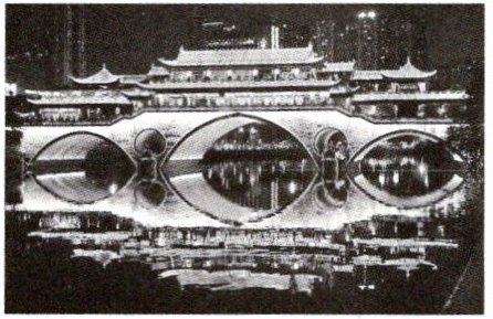 3. (2024·成都) 夜幕降临,横跨成都锦江两岸的安顺廊桥灯火璀璨,桨声灯影里,夜色让人陶然而醉……正所谓“锦江灯月遥相近,烟火市井三千年”。如图,水中“灯影”是由于光的