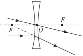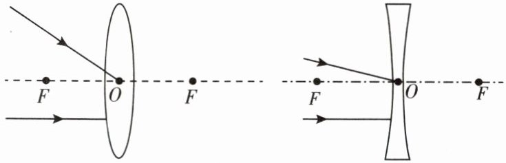 10. 如图所示,请完成两束光通过透镜后的光路。