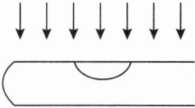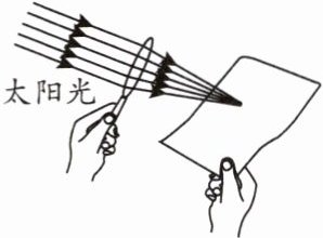 2. 如图,在注有清水的试管内留有一稍大的空气泡,使太阳光从试管的正上方向下照,观察试管下方的白纸,可以发现白纸上空气泡下方较暗,这是因为太阳光射向空气泡和水如同射向