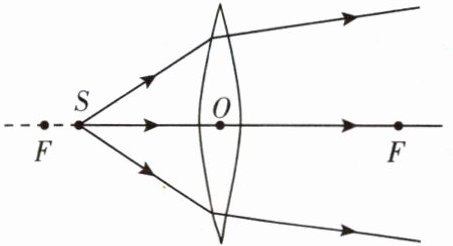 3. 放在凸透镜主光轴上焦点F以内的点光源S发出的光,通过凸透镜后的光路如图所示,则下列说法中正确的是(