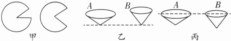 (1)用如图甲所示两个等大的圆纸片,分别裁去一个扇形,做成图乙所示的$A$、$B$两个锥角不等的纸锥。将两个锥角不同的纸锥从同一高度同时释放时,应该选择图中的