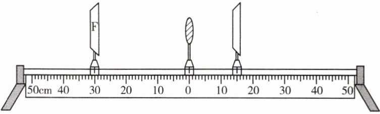。(2)凸透镜的焦距为 $10cm$,小捷将凸透镜固定在光具座零刻度线上,将光源移至光具座左侧 $30cm$ 处后,再移动光屏,直到移至如图所示位置,光屏上会出现清晰