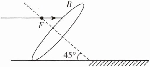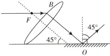 2. 如图所示,将凸透镜倾斜放置在水平放置的平面镜的左侧,其主光轴与水平面成 $45^{\circ}$ 角,请画出其折射光线和通过平面镜反射后的光线,并标出反射角的度数。
