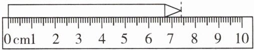 量程 分度值 零刻度线 $1\ mm$ $0~10\ cm$ $7.40$