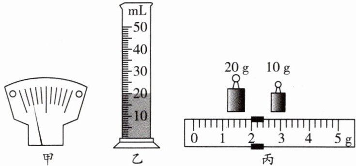 ③ 测量空烧杯的质量 $ m_0 $,天平平衡时,砝码及游码的位置如图丙所示。