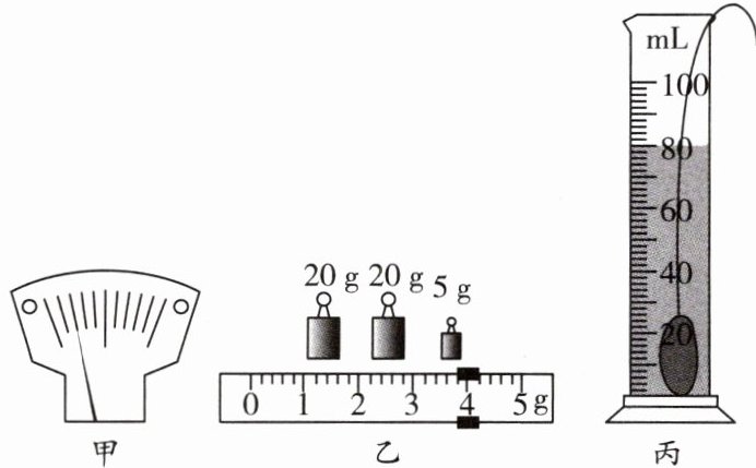 (2) 将矿石放在天平的左盘中,通过向右盘加减砝码后,指针的位置如图甲所示,此时应