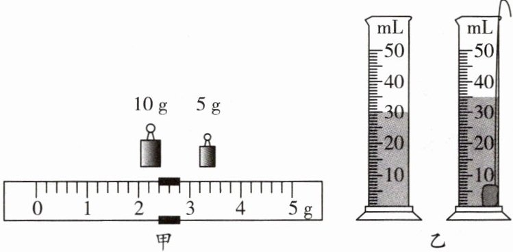 $g$。向量筒内倒入适量的水,再用细线系好小石块,缓慢放入水中,如图乙所示,则小石块的体积为5