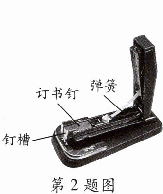 2. 如图所示是一种常见的订书机,放入订书钉后,固定在钉槽内右部的弹簧发生了弹性形变,给订书钉一个向