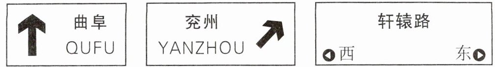 1. 根据下面的路牌示意图,我猜测“曲阜”的读音是______,我猜测“兖”的读音是______。我还会给第三个路牌示意图中的地名标上拼音:______。(可以查字典)