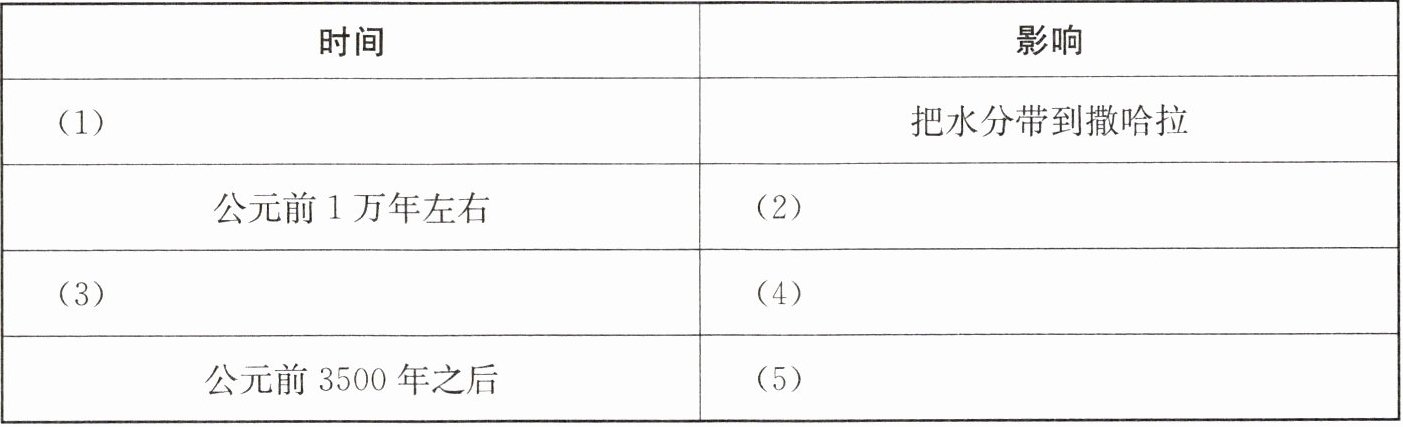 4. 请根据文章信息,分析“季风雨”对撒哈拉的影响,将表格补充完整。