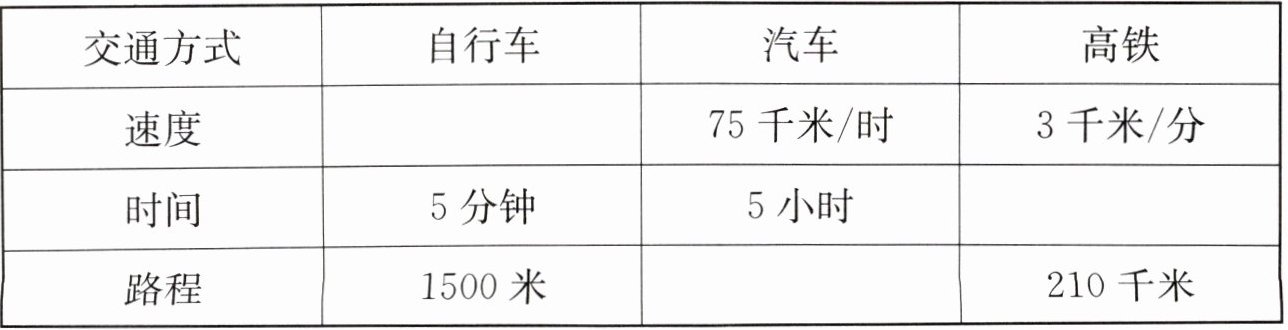 )。(3)下面是三种交通工具的行程表,把表格填写完整。