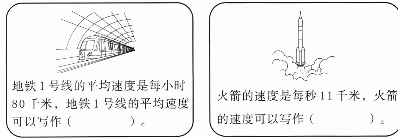 )。火箭的速度是每秒 11 千米,火箭的速度可以写作(