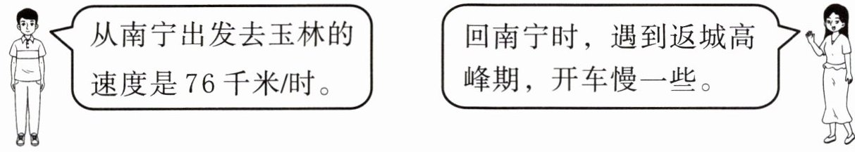 从南宁出发去玉林的速度是 76 千米/时。